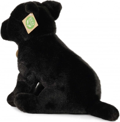 Dit zwarte pluche hondje met lichte borstvlek is gemaakt om mee te knuffelen. Nauwkeurige handgemaakte afwerking en zacht, dicht pluche geven hem een levensechte uitstraling waar kinderen meteen dol op zullen zijn. De vulling van gerecyclede PET-flessen is 100% veilig, getest en qua gevoel niet te onderscheiden van gewone vulling.