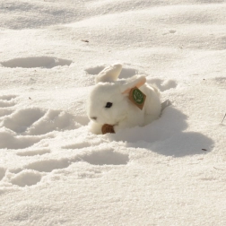 Pluchen konijn in witte kleur, 18 cm groot, handgemaakt van hoogwaardige, zachte pluche voor een realistische uitstraling. Ideaal voor liefhebbers van knuffelzachte pluchen speelgoed.