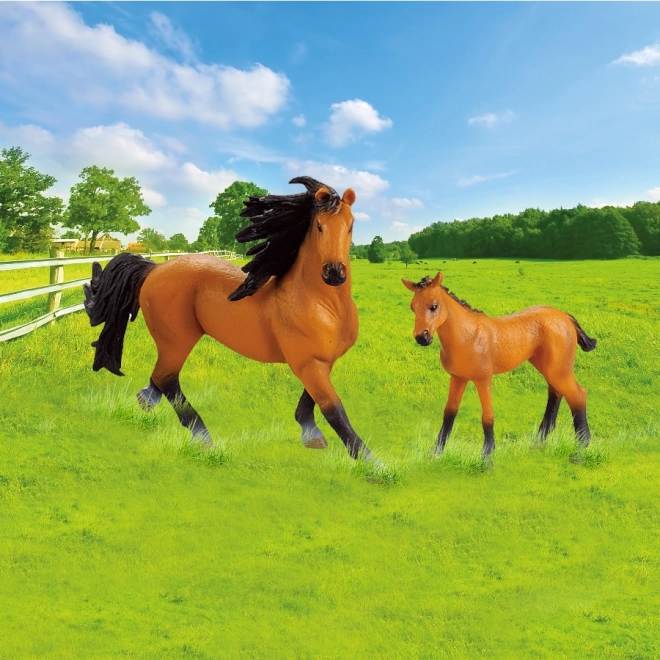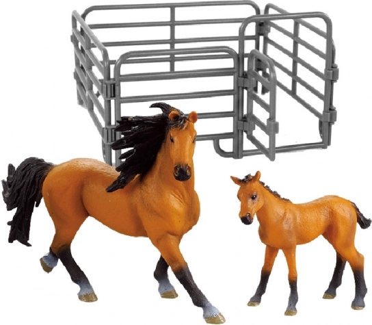 Geniet van perfecte momenten met de set met paard en veulen in bruin met donkere manen. Deze set bevat een omheining, ideaal voor alle paardenliefhebbers en onderdeel van de populaire collectie Mijn Kleine Boerderij.