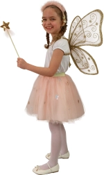 Het kostuum bevat goudversierde vleugels en een sterretjesrok die elke meid een magische uitstraling geven.