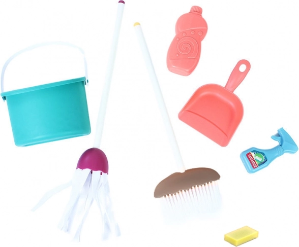 Een leuke kinder schoonmaakset die kleine helpers plezier geeft bij het spelen van huishouden. Bevat een mop, emmer, stoffer en blik en accessoires die reinigingsmiddelen nabootsen, zodat schoonmaken speels en veilig is.