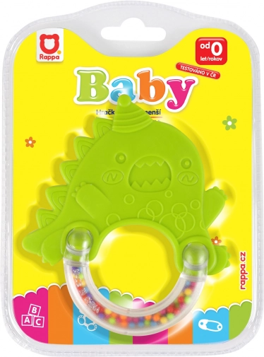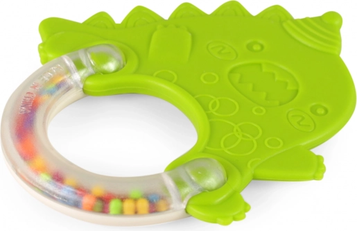 Een schattige rammelaar en bijtring in de vorm van een dinosaurus, ideaal voor de allerkleinsten. Combineert plezier met functionaliteit – helpt het tandvlees te verzachten tijdens het doorkomen van tandjes en ondersteunt tegelijk de ontwikkeling van de motoriek en het visuele waarnemen dankzij contrasterende kleuren en een prettig geluid.