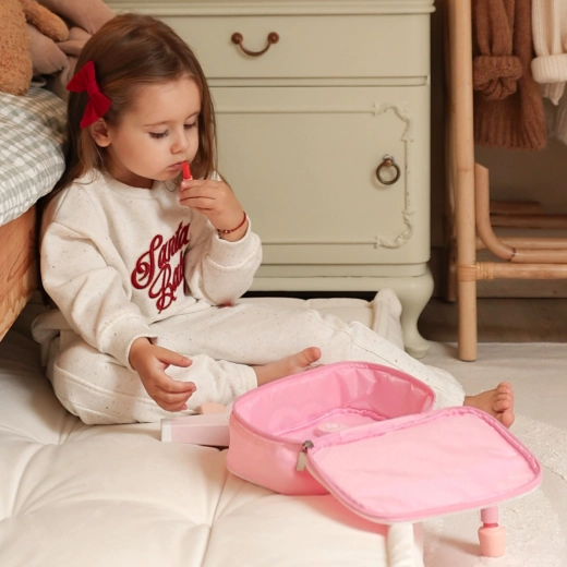 Het praktische toilettasje houdt alle accessoires bij elkaar. Kinderen nemen het gemakkelijk overal mee naartoe en hebben alles klaar voor het spel.