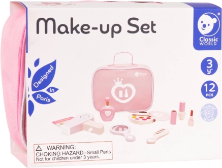 Houten make-upset voor kinderen CLASSIC WORLD in roze tasje