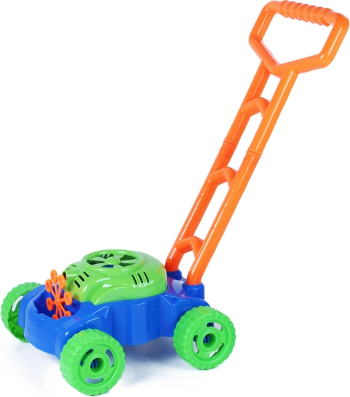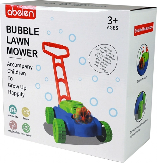 De kinderbellenmaaier is ontworpen zodat kinderen plezier en beweging kunnen ervaren tijdens het spelen in de tuin. Giet de bellenblaasvloeistof in de speciale ruimte en breng de maaier in beweging - miljoenen kleine belletjes vliegen alle kanten op. Voor nog meer plezier maakt de maaier geluiden en speelt muziek wanneer je hem voedt met drie AA-batterijen (niet inbegrepen), of kan worden gebruikt zonder batterijen met mechanisch geluid.