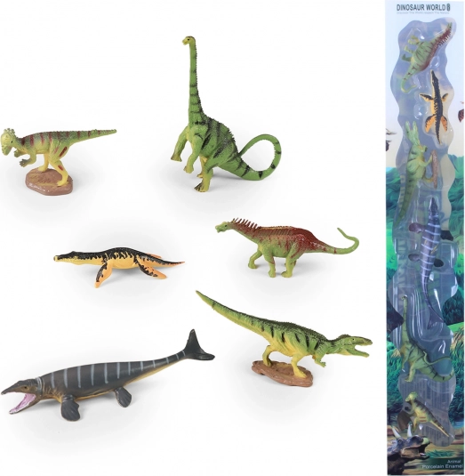 Ontdek de prehistorische wereld met een set van zes gedetailleerde dinosaurussen. De figuurtjes zijn gemaakt van hoogwaardige, harde rubber en dankzij het compacte formaat van ca. 6–10 cm zijn ze perfect om thuis en onderweg mee te spelen. Het praktische doosje maakt opbergen en meenemen eenvoudig.