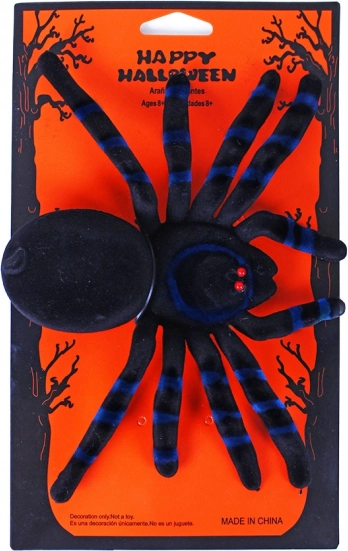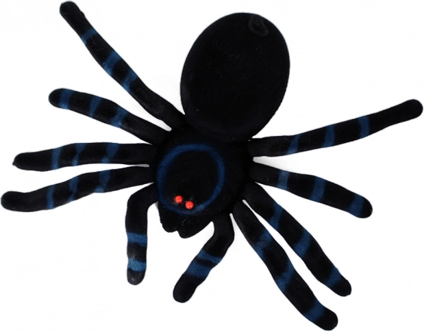 De spin met realistisch ontwerp en blauwe strepen voegt een griezelige sfeer toe aan elke ruimte.