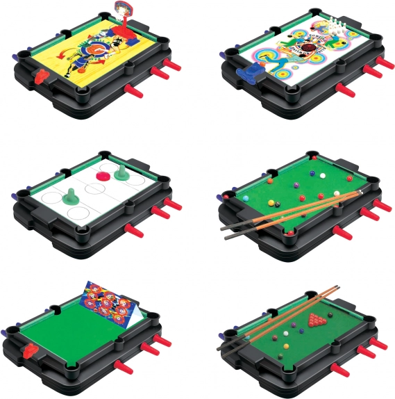 Geniet van plezier met deze uitzonderlijke 7-in-1 spelenset, met tafelvoetbal, biljart, knikkerspel, schiethockey, dartbord, bowlen en basketbal. Ideaal voor gezellige bijeenkomsten of familiefeesten.