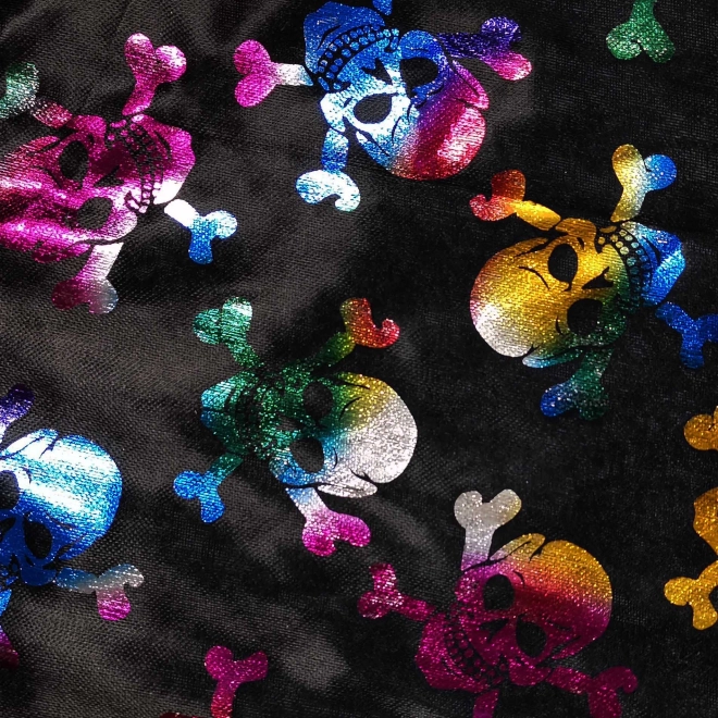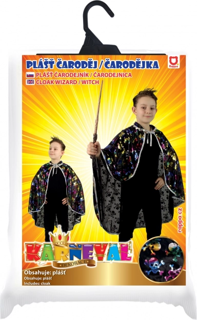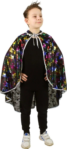 Verander je kind in een handomdraai in een tovenaar of heks met een lichte en comfortabele mantel die eenvoudig in de nek gestrikt wordt. Dankzij de kraag en de opvallende metallic schedelprint ziet het kostuum er geweldig uit op elke foto en op de dansvloer.