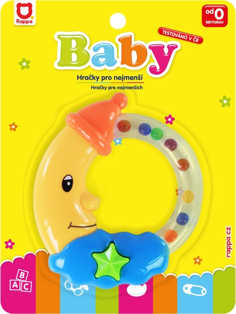 Deze kleurrijke rammelaar in de vorm van een glimlachend maantje is het ideale eerste speelgoed voor de allerkleinste handjes. De transparante ring met gekleurde balletjes maakt tijdens het bewegen een aangenaam geluid dat de aandacht van de baby trekt en de natuurlijke nieuwsgierigheid prikkelt. De contrasterende kleuren en het lieve design zorgen voor plezier en dragen tegelijkertijd bij aan de zintuiglijke ontwikkeling.