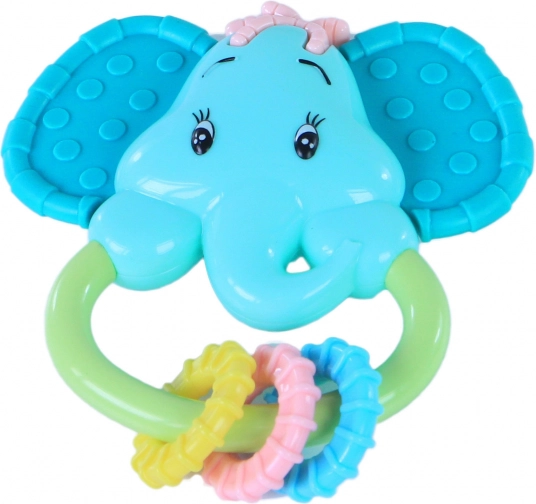Een schattige rammelaar en bijtring in de vorm van een olifant die elke baby zal verblijden. Dankzij de comfortabele greep en getextureerde delen biedt hij perfecte ondersteuning bij het doorkomen van tandjes en stimuleert hij fijne motoriek, zintuiglijke waarneming en hand-oogcoördinatie.