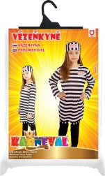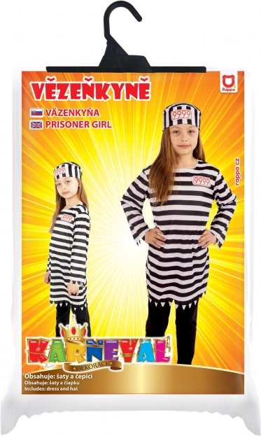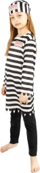 Breng sfeer op elk carnaval met dit opvallende gevangeniskostuum in het kenmerkende zwart‑wit. De set bevat een lang shirt met een karakteristieke kartelzoom en een muts met het nummer 9999, wat de outfit een authentieke uitstraling geeft. Geschikt voor meisjes van 105–116 cm (ca. 4–6 jaar).