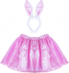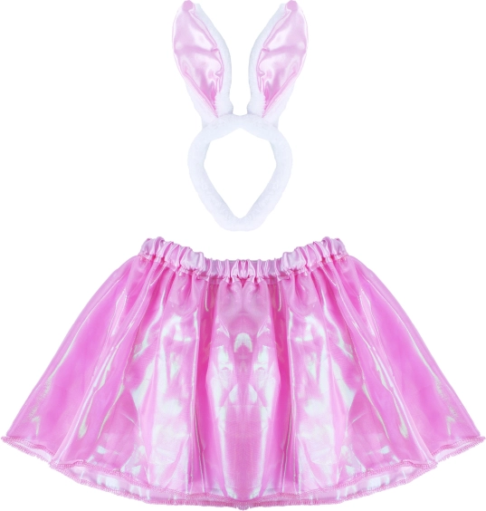De glanzende roze rok en schattige diadeem met oren vallen meteen op. Perfect voor speciale gelegenheden en verkleedfeesten!