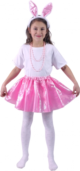 Dit prachtige konijntje kostuum is ontworpen voor kleine meisjes die graag het middelpunt van aandacht willen zijn op verkleedpartijtjes. Het bestaat uit een glanzende roze rokje en een diadeem met roze konijnenoren. Het product is licht en comfortabel, wat onbeperkte beweging mogelijk maakt.