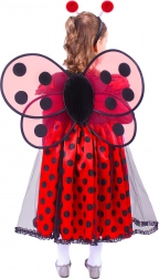Het kostuum bootst het lieveheersbeestje perfect na dankzij de rode jurk met zwarte stippen, vleugels en een haarband met voelsprieten.