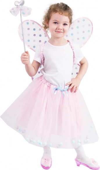 Verander je kind in een fee met dit betoverende kostuum! De set bevat een roze tutu rok, bijpassende lichtgevende vleugels en een toverstok, ideaal voor kleine meisjes.