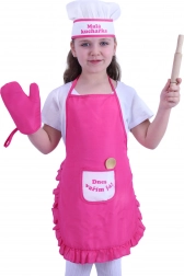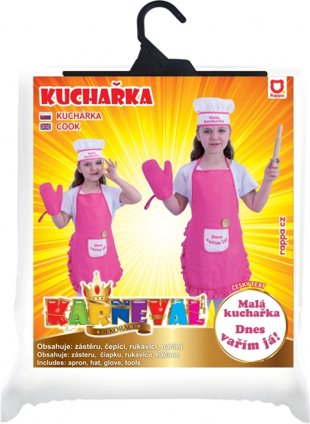 Ideaal kostuum voor elke kleine kokkin! Dit roze kostuum bevat een schort, koksmuts, ovenwant en houten keukengerei - alles wat je nodig hebt voor leuk speelplezier.