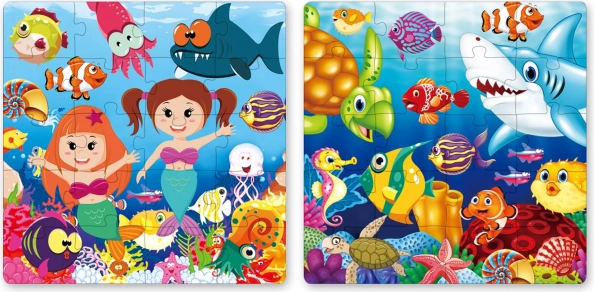 Ontdek de wereld onder water met magnetische puzzels die de fijne motoriek, geduld en logisch denken stimuleren. Twee verschillende afbeeldingen met elk 20 stukjes zorgen voor veel plezier voor beginnende puzzelaars – en dankzij de magnetische ondergrond raken de stukjes niet kwijt.