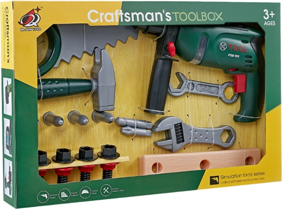 Complete kinderset voor kleine klusjesmannen biedt realistisch speelplezier met tools zoals een accuboormachine, hamertje, handzaag, sleutels en andere accessoires. De boormachine werkt op 2× AA 1,5 V batterijen (niet inbegrepen) en helpt bij het ontwikkelen van fijne motoriek, creativiteit en fantasierijk spel.
