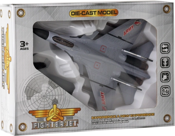 Deze gedetailleerde straaljager biedt een combinatie van licht- en geluidseffecten die het spel versterken en de verbeelding van kinderen stimuleren. Dankzij het pull-back mechanisme rijdt het vliegtuig na het terugtrekken vanzelf, het knippert en maakt verschillende geluiden.