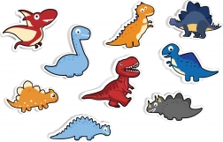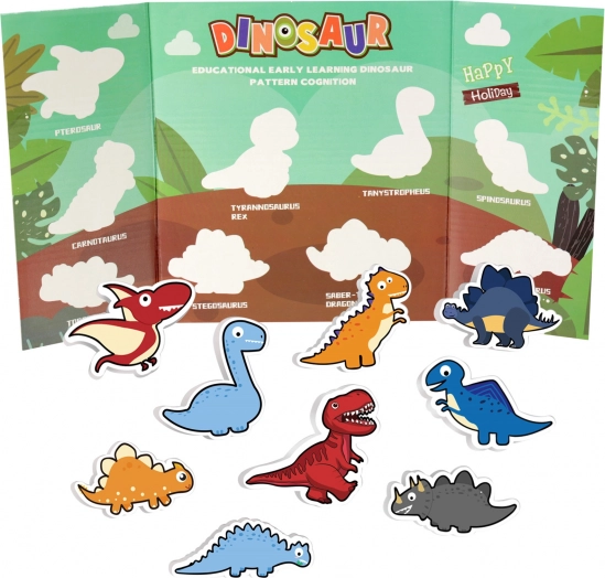 - Ondergrond, 9 dinosaurusuitsnijdingen, 9 stickers, overeenkomstig aantal magneten