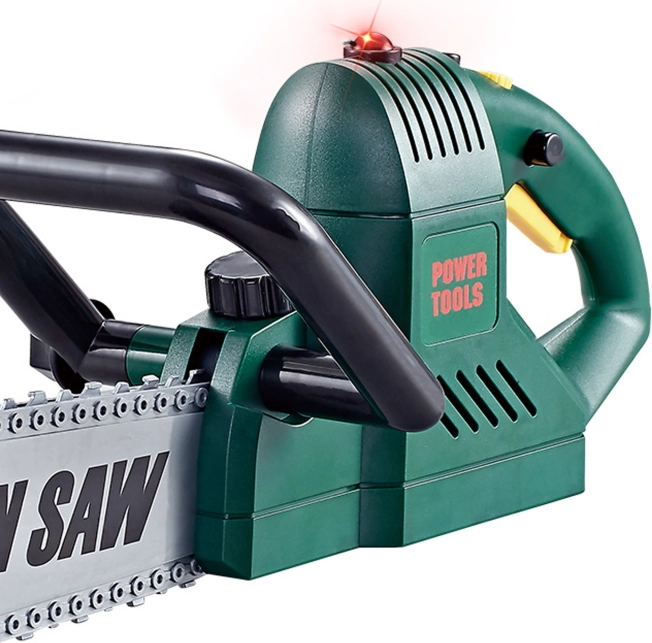 Deze kinderkettingzaag biedt een realistische speelervaring en stimuleert zowel de fantasie als de motoriek. Bij het indrukken van de knop wordt het geluidseffect geactiveerd, gaat het lampje aan en draait de ketting, wat een echte kettingzaag natuurgetrouw nabootst.