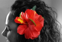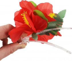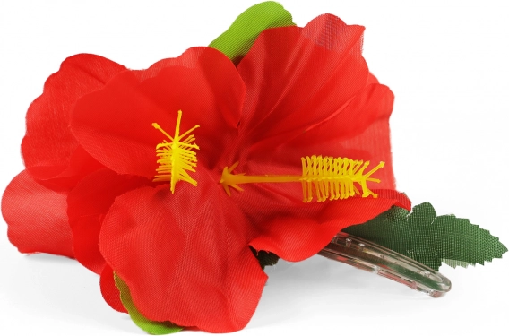 De hibiscusbloem gemaakt van textiel in combinatie met plastic oogt zeer realistisch en verlevendigt elk kapsel.