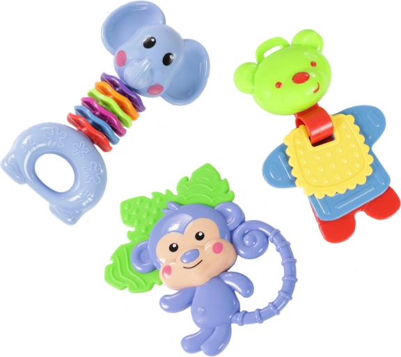 Breng vreugde in de kinderkamer met onze set dierenrammelaars. Met hun heldere kleuren en interessante vormen ontwikkelt uw baby zijn of haar zintuigen en is urenlang vermaakt. De rammelaars zijn ontworpen om kleine kinderhandjes te passen, wat het vastpakken en hanteren vergemakkelijkt.