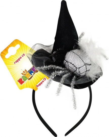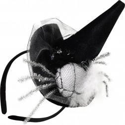 Stijlvolle haarband met minihoedje en spin is een opvallende accessoire voor feestjes, carnaval en Halloween. Zit stevig in het haar, is licht en comfortabel en geeft je kostuum een instant magisch effect. Geschikt voor kinderen vanaf 3 jaar.