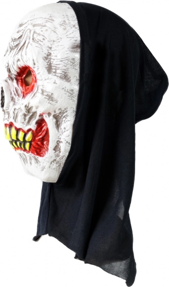 Dankzij het lichte kunststof voelt het masker prettig aan op het gezicht en de textielen capuchon bedekt betrouwbaar zowel haar als hals voor een perfect kostuum zonder compromissen. Makkelijk te combineren met een zwarte mantel, handschoenen of een skeletkostuum.