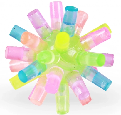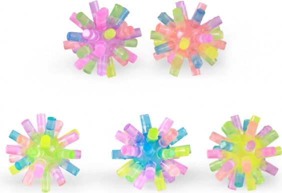 Onze stuiterbal met stekels brengt veel plezier en creativiteit in het dagelijks spel. Met levendige kleuren en unieke stekels zal het elk kind boeien en hun fantasie prikkelen. Hoewel er geen specifieke soort gekozen kan worden, garandeert de totale verpakking van 24 stuks uren onvergetelijk plezier.