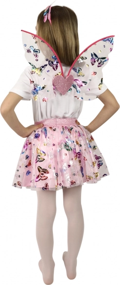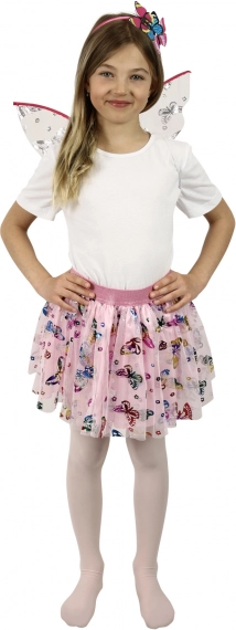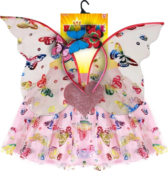 Verander uw kleine prinses in een betoverende vlinder met dit geweldige kostuum. De roze rok met kleurrijke vlindertjes wordt prachtig aangevuld met een decoratieve haarband en vlindervleugels. Perfecte keuze voor fantasiespel of carnavalsfeestjes.