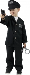 Verander in een kleine politieagent met dit geweldige kostuum, dat een blouse met de opdruk POLITIE, een broek en een pet bevat. Ideaal voor kinderen van 4-6 jaar.