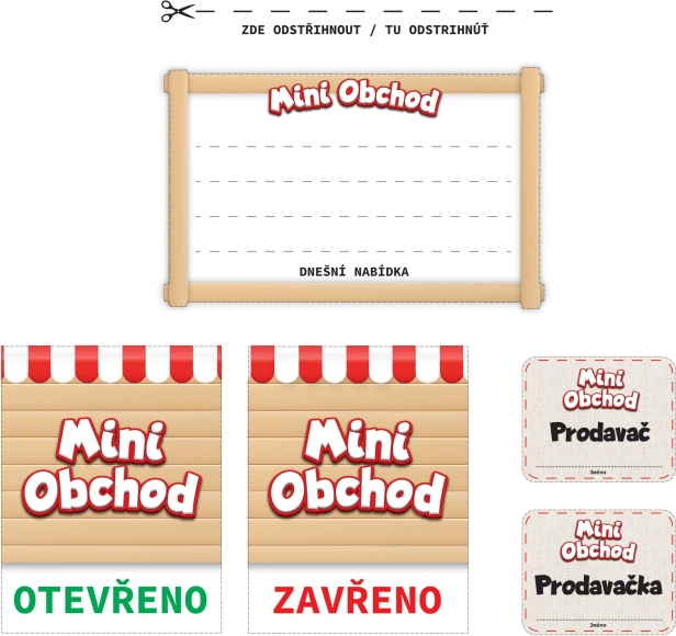 - Kaarten met opdrachten en prijslijsten voor educatieve plezier.