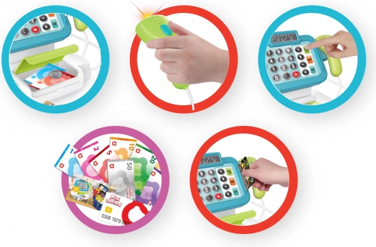 De kassa bevat een functionele rekenmachine en een licht- en geluidslezer voor een nog betere ervaring.