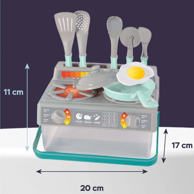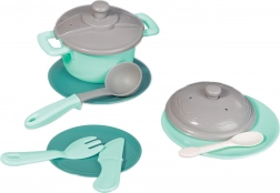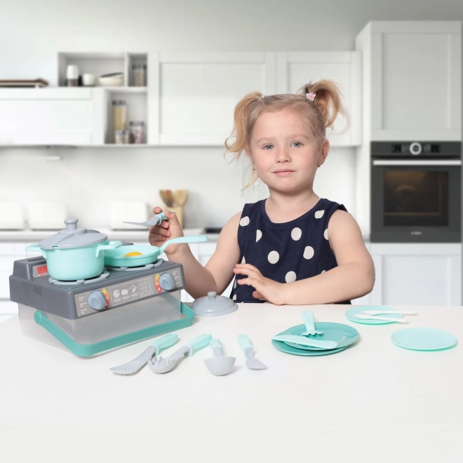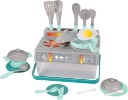 Deze kinderen keukenset in grijs en turquoise bevat alles wat kinderen nodig hebben om kokje te spelen. De set bevat: