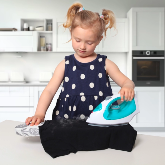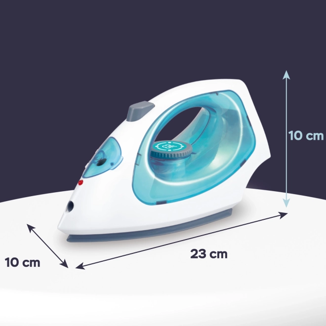 Verander dagelijkse taken in een favoriet spel. Het kinder-stoomstrijkijzer in wit-turquoise uitvoering heeft realistische verlichting, maakt geluiden en geeft veilig stoom af na het bijvullen van water met het meegeleverde flesje. Ideaal voor spel met poppen en het nadoen van volwassenen.
