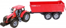 Krachtige tractor met aanhanger met een lengte van 42 cm, ideaal voor kleine boeren. De inertie-aandrijving en de openende achterkant van de aanhanger zorgen voor plezier en een realistisch spel.