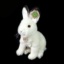 De gedetailleerde vorm, zachte witte pluche en zwart afgewerkte oortjes geven de haas een authentieke uitstraling waar je verliefd op wordt.