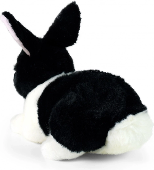 Het zwart‑witte konijntje lijkt levensecht en nodigt uit tot knuffelen dankzij het extra zachte materiaal.