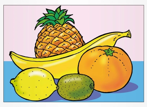 Bevat populaire motieven zoals aardbeien, kruisbessen, aalbessen, frambozen, bosbessen, ananas, banaan, sinaasappel, meloen, druiven en groenten (sla, komkommer, paprika, pompoen, aubergine, ui e.a.). Het praktische A5-formaat past in de rugzak en is handig voor onderweg.