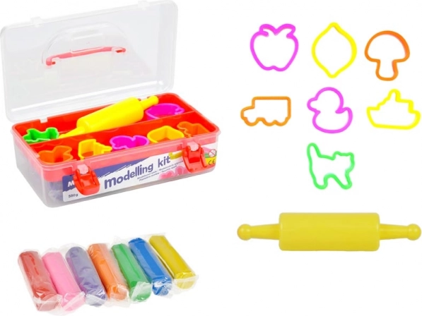 Deze kleurrijke modelleerset is ideaal voor thuis knutselen en peuter-/kleuteractiviteiten. Kinderen kunnen met de meegeleverde vormpjes en deegroller allerlei motieven uitsteken, uitrollen en vormen. De praktische transparante koffer houdt alles bij elkaar en maakt transport eenvoudig.