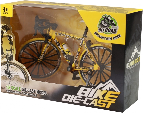 De miniatuur gele mountainbike is een geweldige keuze voor kinderen die van actie en beweging houden, maar ook voor volwassen verzamelaars. Dankzij de vrijloop van de wielen rijdt hij gemakkelijk weg en rolt soepel over een vlak oppervlak. Het realistische design komt tot zijn recht zowel op de plank als tijdens het spelen.