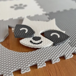 Deze speelmat met wasbeer- en pootafdrukmotief verandert elke kinderkamer in een veilige en zachte speelplek. Eenvoudige en makkelijke montage dankzij de interlock-randen en het duurzame materiaal.