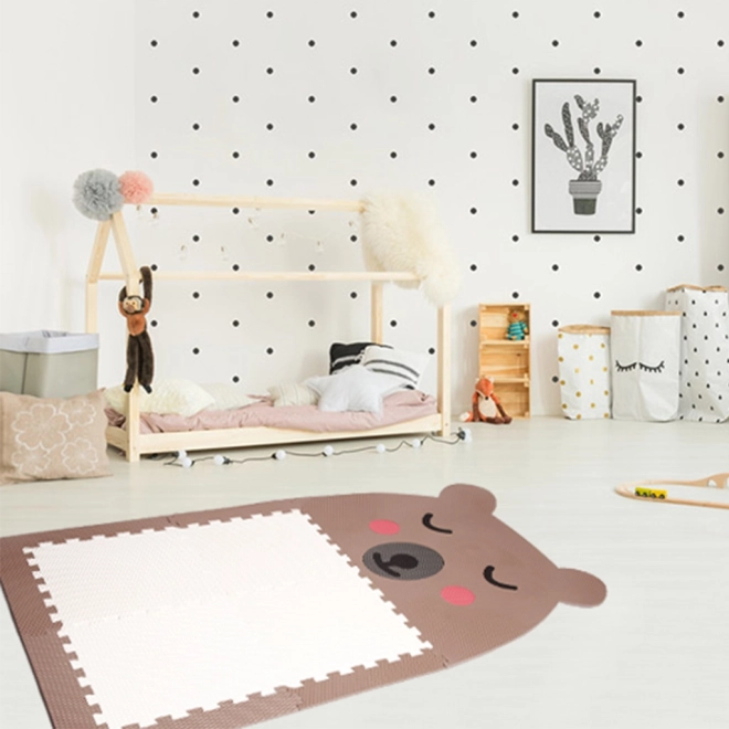 Design puzzel vloer in de vorm van een bruine beer met een witte buik brengt plezier en gezelligheid in de kinderkamer. Het is ideaal voor kinderen om op te spelen en biedt tegelijkertijd een comfortabele en zachte ondergrond. Makkelijk te onderhouden en veiligheid zijn de sleutelkenmerken van dit product.