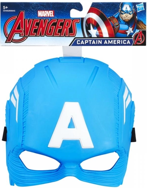 Het blauwe masker van Kapitein Amerika met het iconische 'A' op het voorhoofd brengt je in de strijd voor gerechtigheid.