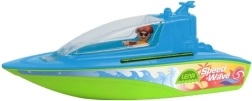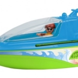 Sportboot van het merk Lena biedt een open cabine voor twee poppetjes en wordt geleverd met een surferfiguurtje. Kinderen zullen er veel plezier mee hebben in het zwembad of in bad.