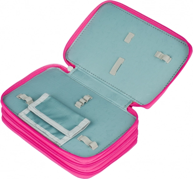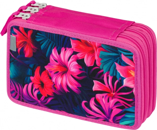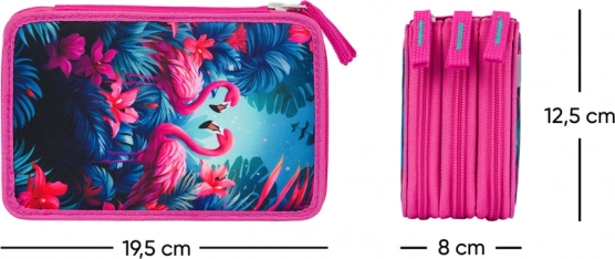 Deze driedelige school etui met tropisch flamingo motief en kleurrijke bladeren biedt niet alleen stijl, maar vooral functionaliteit voor het organiseren van al uw schrijfbenodigdheden. Elk compartiment maakt gebruik van betrouwbare merkritsen YKK en een verstevigde rug vergemakkelijkt de bediening bij het sluiten.