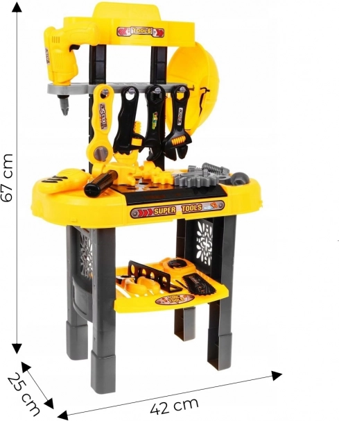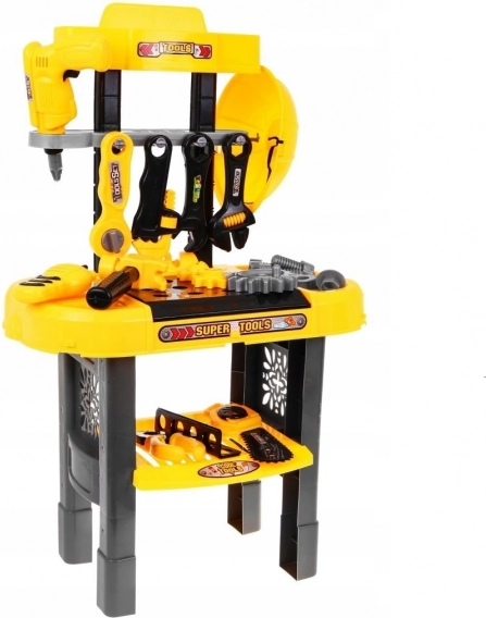 De werkplaats is gemaakt van veilig plastic en is bedoeld voor kinderen vanaf 3 jaar oud. Het biedt vele uren plezier en educatieve spelletjes.