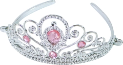 Mooie kroon met roze stenen en fijne metaaldetails zit licht en comfortabel op het hoofd van elke prinses.